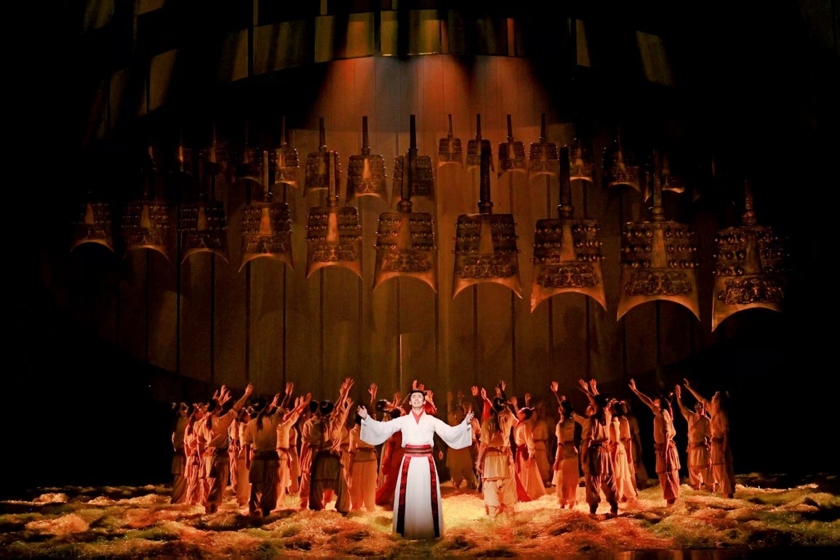 舞剧以春秋为背景,取意“大乐与天地同和,大礼与天地同节”,借爱与恨、忠与信的故事,展楚式美学之瑰丽,传楚人进取、尚和的文化气度。