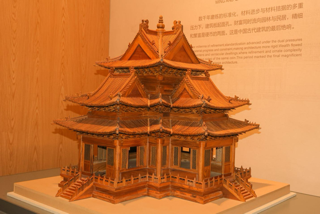古代建筑展厅分为“构、筑、跨、耸、宜”五个部分,通过文物、模型、沉浸式装置等多元形式,解锁中国古建的匠心密码。展厅内,“史前混凝土”屈家岭红烧土、破解《营造法式》彩画密码的五彩遍装斗拱模型直观呈现技艺精髓;“墙倒屋不塌”的抬梁式框架、雕饰灵动的黄釉琉璃滴水、题材多样的狮座木构件等展品,既展现“牢而不固”的榫卯智慧,也传递古建独特的审美意趣。应县木塔、嵩岳寺塔等经典古建缩尺模型在新展陈空间中观感升级,沉浸式观影区与多媒体互动区还可让观众深入了解“样式雷”家族历程,读懂古建中蕴含的世界观与礼制规范。