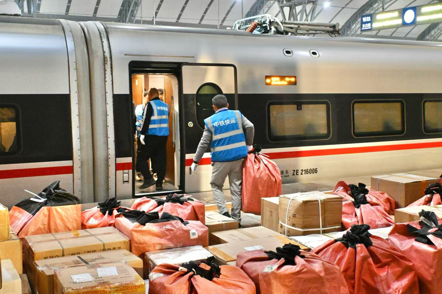 凌晨5时的汉口站,晨曦微露,10吨装袋整齐的服装、生鲜、电子产品等快件有序摆放,铁路工作人员正忙碌地将包裹搬入高铁车厢。5时58分,DJ892次列车满载湖北特色货物准时启程南下;而在一个多小时前,装载着广东货物的DJ890次列车已从广州白云站出发,向汉口站疾驰而去,双向对开的列车架起跨区域物流新桥梁。