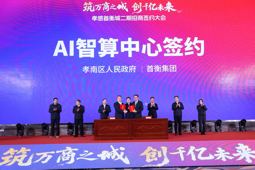 11月28日,在孝感市委、市政府的统筹推动下,“筑万商之城 创千亿未来”孝感首衡城二期招商签约大会召开。孝感市委副书记、市长林中麟出席活动并发表讲话,市、区两级主要领导组团参会,政企携手为华中农产品商贸枢纽升级按下“加速键”,近800名政企、国际、金融、行业代表齐聚现场,共同见证AI智算中心落地、5大板块签约两大核心亮点的诞生。