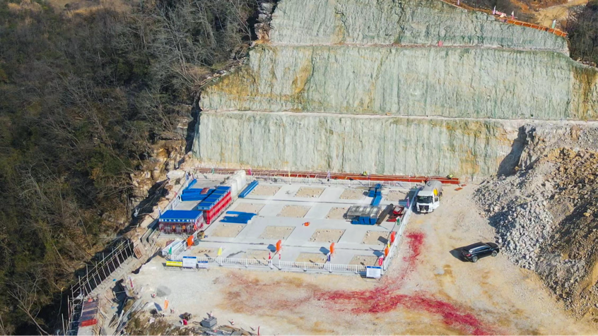 三峡大桥北岸主墩共设有32根桩基,采用分离式承台配群桩基础,单个承台下设16根直径3.4米的钻孔灌注桩,最深12米。为确保首轮桩基顺利开钻,项目团队统筹规划、科学部署,历时6个月,在70°的陡坡上,开挖了一条长达1.3公里的施工便道。同时,团队将原有的山头削平,开辟出5138平方米的建设场地,为大型设备的进场创造了有利条件。
