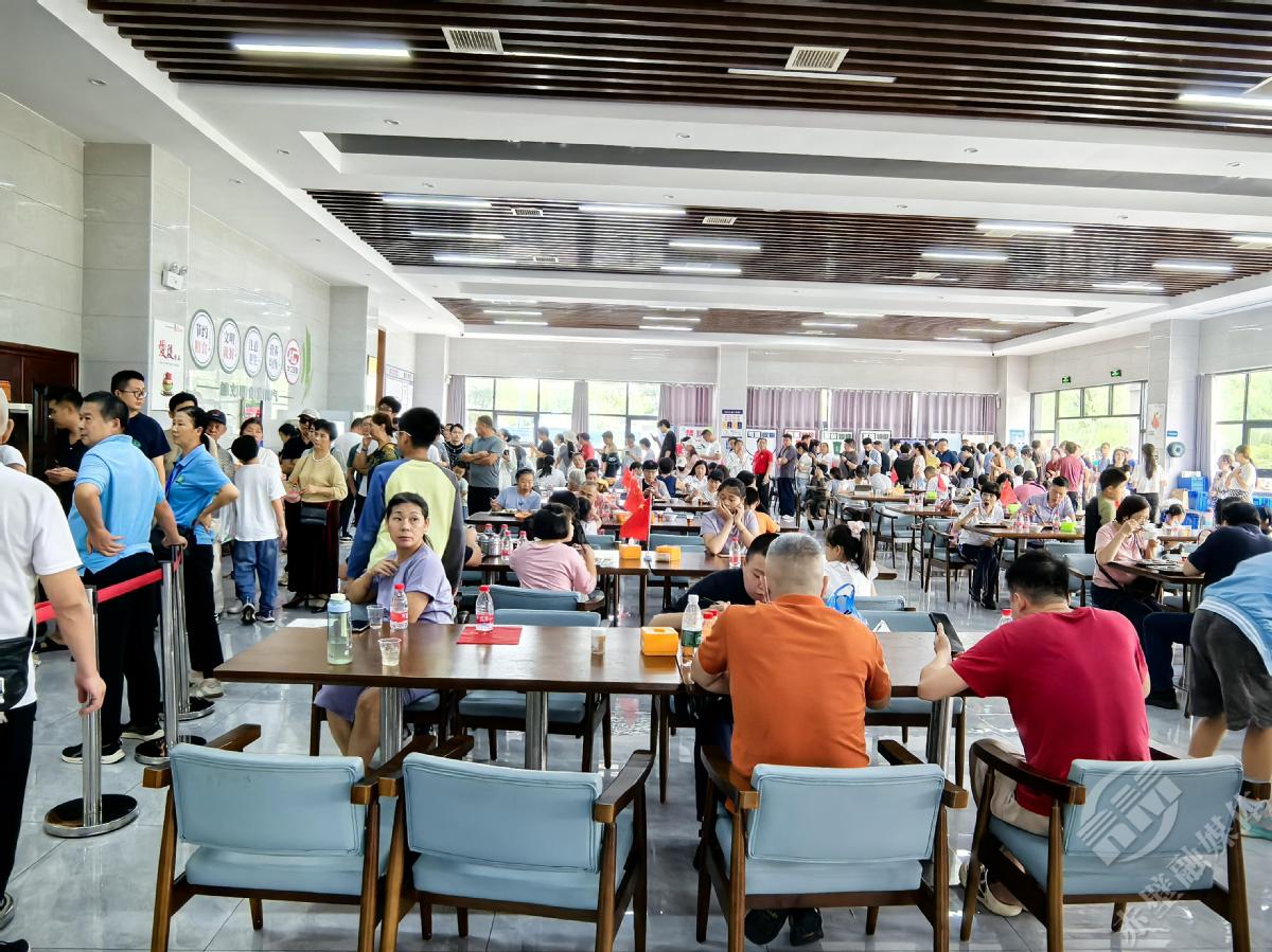上午10点30分,距离开餐还有1小时,食堂已迎来首批客人。来自荆门的孙女士一家五口提前做了攻略,刚到赤壁就直奔食堂,工作人员及时递上温热的青砖茶和月饼,“吃饱了下午正好去景区,太方便了”。11点30分开餐铃响,食堂内迅速热闹起来,关刀鱼的鲜嫩、红烧肉的油香、鱼糕的软糯弥漫开来,不到12点便座无虚席,游客们有序取餐、用餐,餐后主动将餐盘送至指定区域,现场秩序井然。
