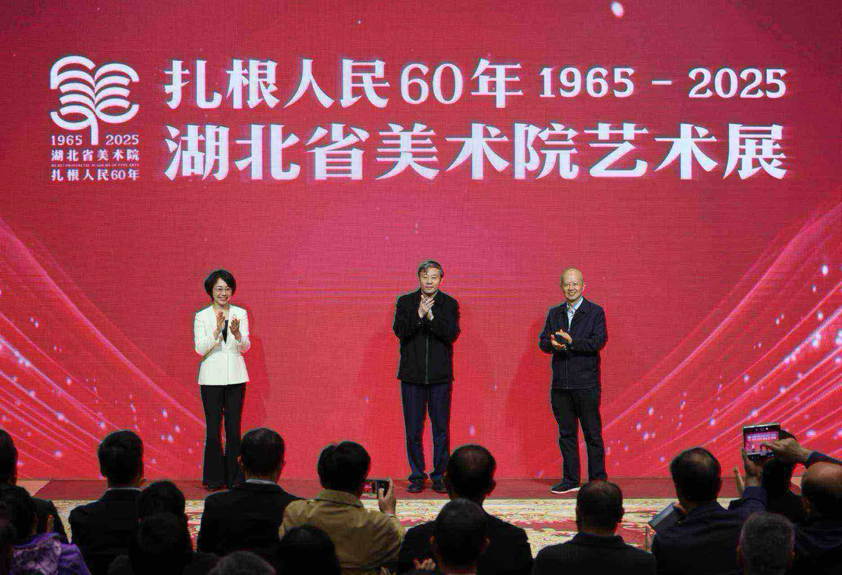 10月12日上午,“扎根人民60年——湖北省美术院艺术展”在中国美术馆拉开帷幕。此次展览由中国美术馆、中国国家画院、中共湖北省委宣传部、湖北省文化和旅游厅、湖北省文学艺术界联合会联合主办,中国美术家协会指导,湖北省美术院、湖北省美术家协会承办,集中呈现湖北省美术院60年深耕艺术、扎根人民的丰硕成果。