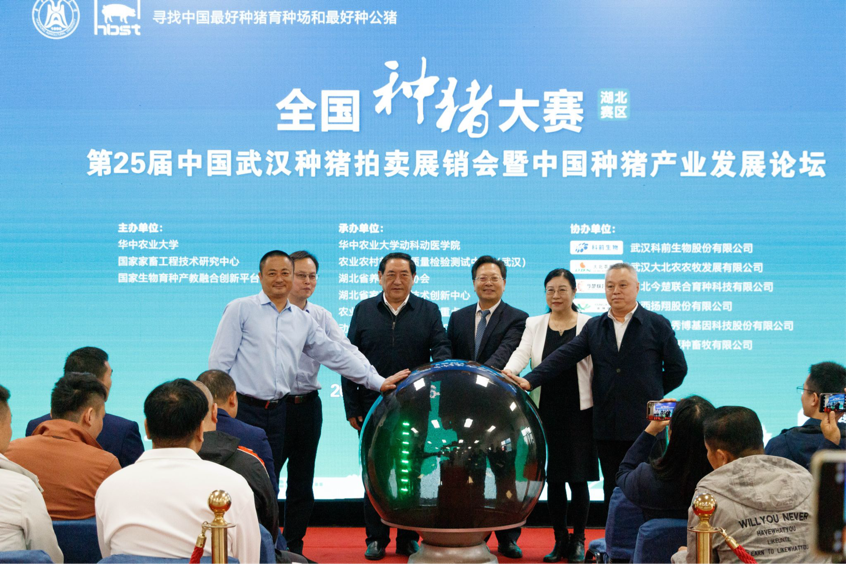 蔡辉益则指出,武汉种猪拍卖展销会已连续举办25届,既是展示行业技术成果、促进商务洽谈的平台,更是实现种猪优质优价、推动产业创新的关键途径,协会将持续推进种猪遗传改良与产业化应用。随后,牛捍卫宣布第25届中国武汉种猪拍卖会正式开拍。