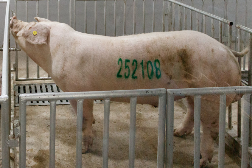 本次大赛前期收测274头种公猪,涵盖杜洛克、长白、大白等品种,经农业农村部种猪质量检验测试中心(武汉)近4个月测定评估,最终遴选出15头特优级种公猪公开拍卖、107头优级种公猪暗标竞购。拍卖现场秩序井然,企业代表紧盯屏幕与“种猪亮相区”,随着拍卖师喊价,竞拍号码接连举起。其中,20252108号长白种公猪因综合指数、外形评定双第一,引发激烈竞争,加价声此起彼伏,最终以10.8万元成交,当选本届“标王”。