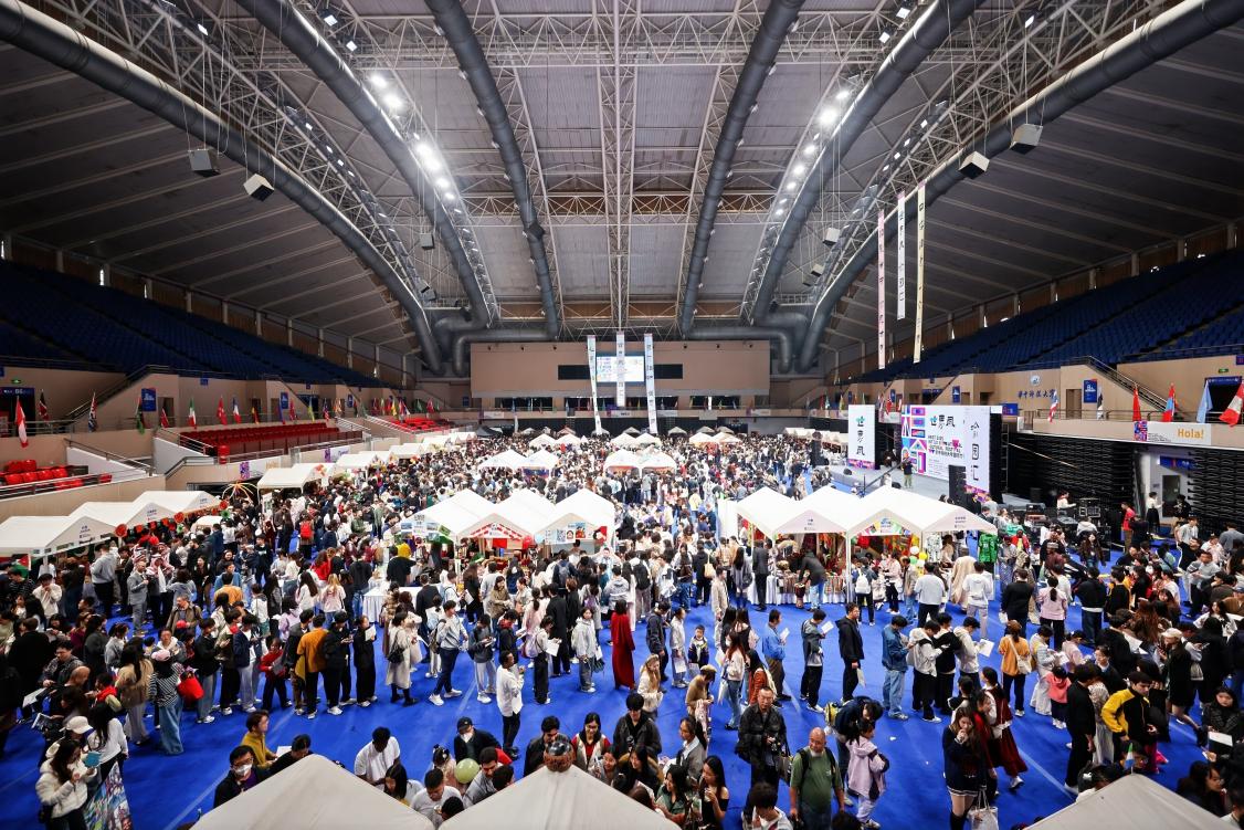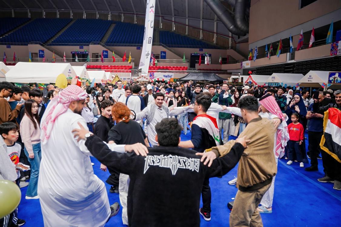 文化展区人头攒动,近70个国家的主题展位创意纷呈。地道传统美食、特色手工艺品、精美文创产品等引人驻足,中外学子在互动体验中沉浸式感受不同文化的独特魅力。舞台区域气氛热烈,中外文艺节目轮番登场:中国民乐悠扬婉转,俄罗斯舞蹈欢快灵动,蒙古舞步豪迈奔放,多国歌曲联唱激情洋溢,为现场观众献上跨越文化疆界的视听盛宴。