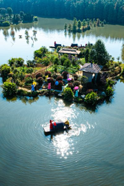 采风团先后走进梦里水乡、沔阳小镇,泛舟水上森林,观看水上婚礼,欣赏大雁伴飞、飞车绝技。为了提升活动效果,一场大型行进式融媒体直播在沔阳小镇同步开启,吸引来自全网560万人次线上观看。近百名游客朋友与采风团共进长桌宴,“开笼咯……”仙桃市沔阳三蒸美食协会荣誉会长李和鸣领衔开笼仪式,一道道沔阳三蒸,17项非遗美食轮番亮相,现场游客朋友纷纷拍照打卡,连连点赞。