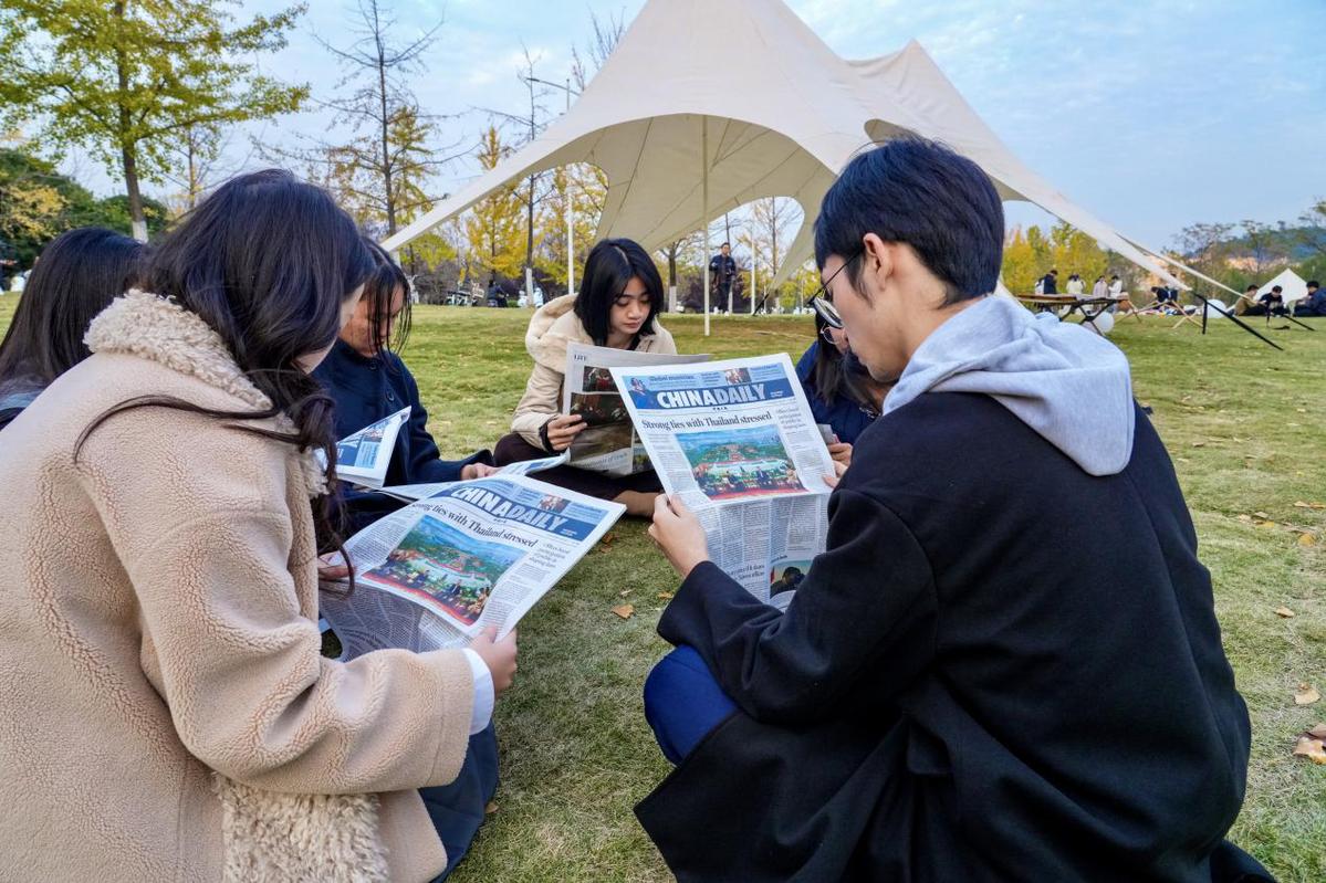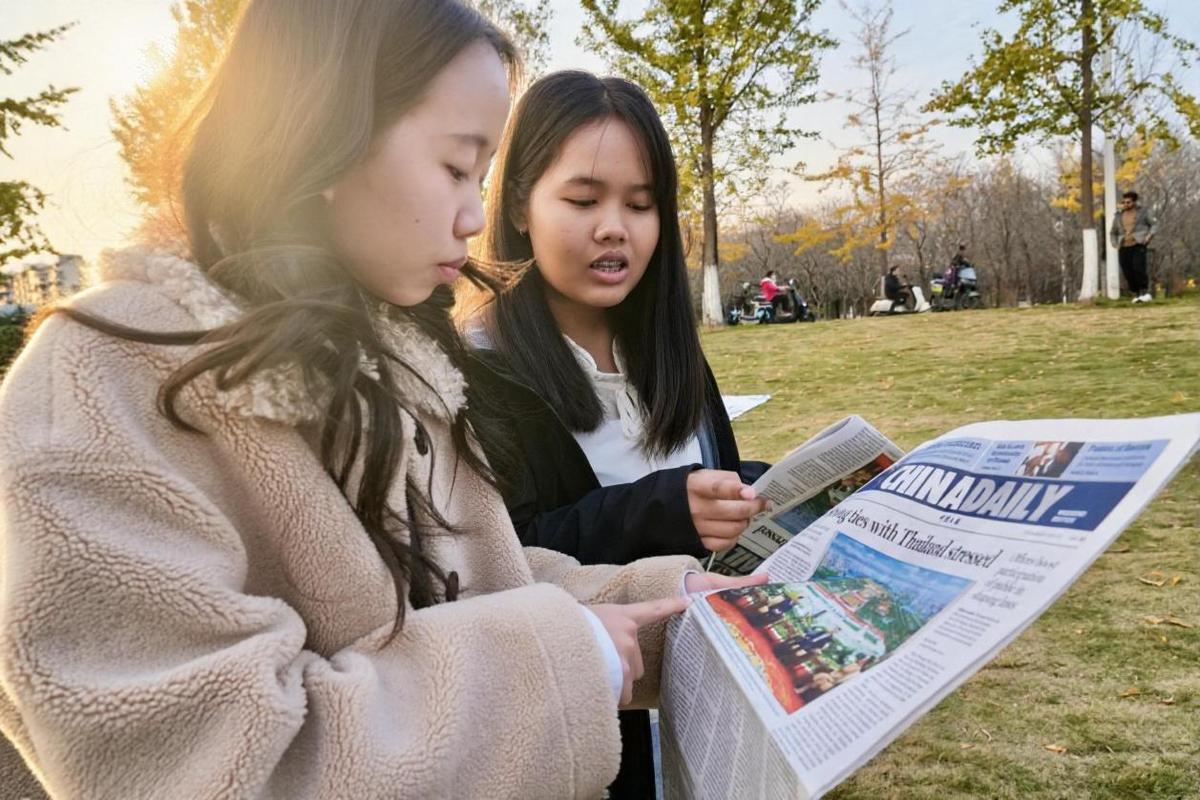 在泰国国王访华期间,参与泰国ODOS计划的50名泰国青少年正在华中科技大学进行为期六周的学习。11月17日,他们在校园草坪上共同阅读《中国日报》,交流学习心得,感受这一特殊时刻的浓厚氛围。(中国日报湖北记者站 编辑:周荔华 )