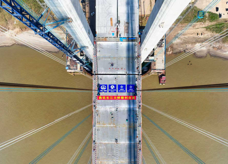 11月22日,由湖北交投投资、中交二航局及中铁大桥局联合承建的湖北燕矶长江大桥完成最后一段巨型钢桁梁吊装,顺利合龙。这座横跨鄂州、黄冈两地的超级工程,以1860米主跨刷新世界四主缆悬索桥跨径纪录,为万里长江再添交通新动脉。