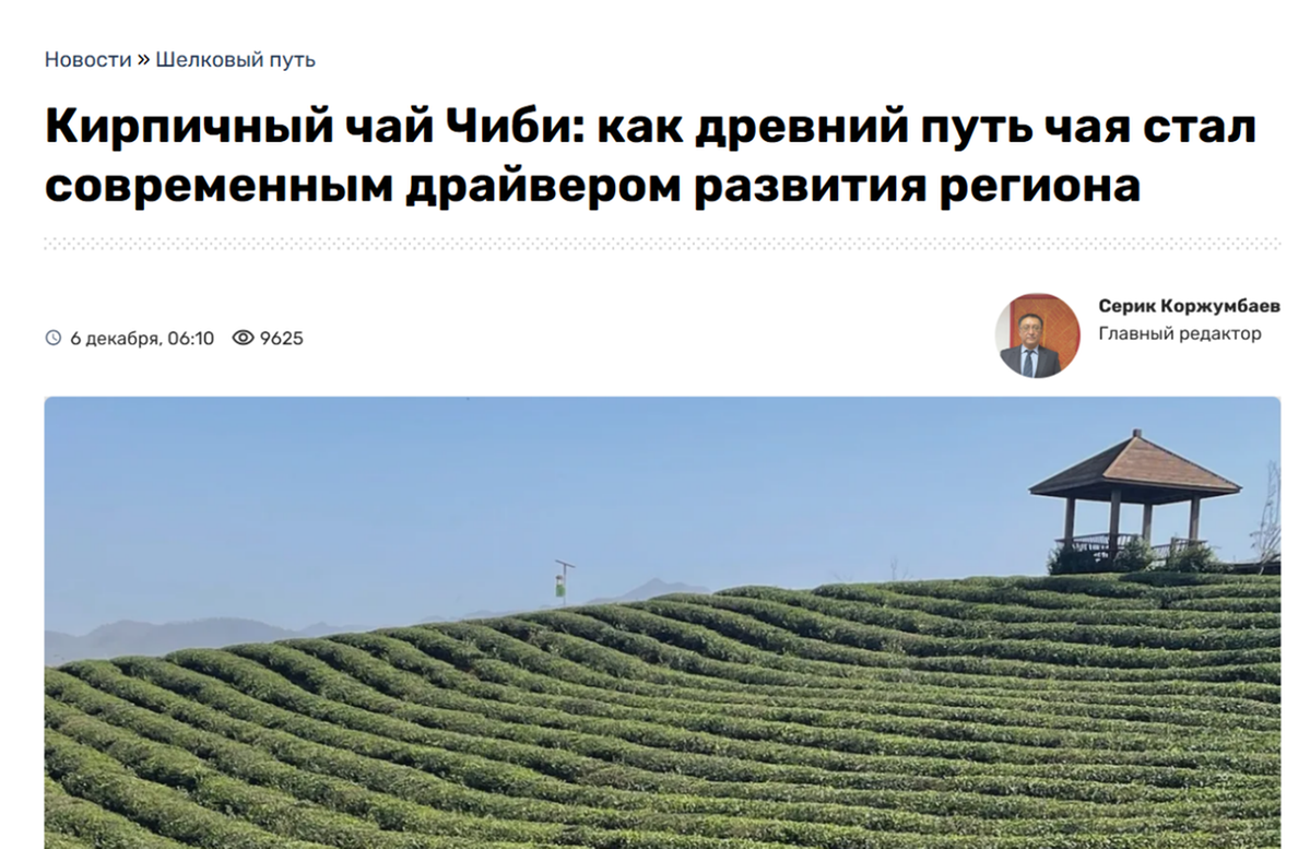 2025年11月26日-28日,来自哈萨克斯坦、阿塞拜疆、越南、马来西亚等“一带一路”共建国家的10多位媒体代表来到湖北赤壁,踏访1800多年前三国赤壁之战古战场遗址,体验欧亚大陆万里茶道源头青砖茶的茶香。参访结束后,哈萨克斯坦《实业报》总编辑谢里克·科尔茹姆巴耶夫在DK News(哈萨克斯坦国家新闻社)发表了报道:《赤壁砖茶:古老茶路如何成为区域发展的现代驱动力》